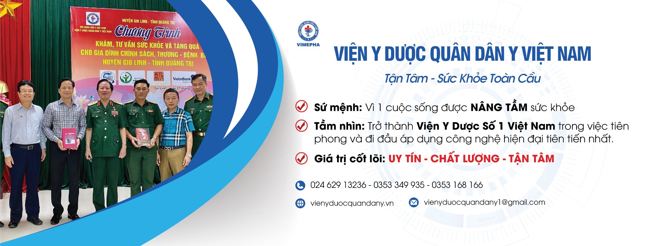 Viện Y Dược Quân Dân Y Việt Nam ra đời nhằm kế thừa, nghiên cứu và phát triển những bài thuốc quý trong kho tàng tri thức của 54 dân tộc Việt Nam, để Khơi dậy tiềm năng trở thành hiện thực, nâng tầm y dược Việt Nam lên tầm thế giới, Nâng tầm sức khỏe người Việt.